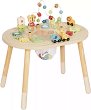 Дървената активна маса за игра от Tooky Toy е създадена, за да подари на децата часове забавление и учене чрез игра. Тази красиво изработена маса комбинира образователни дейности с креативна игра, вдъхновена от природата и нейните обитатели. Изработена от висококачествена дървесина и шперплат, масата е украсена с меки и живи цветове, изобразяващи симпатични горски животни, които привличат вниманието на малките изследователи. Всички използвани бои са безопасни и нетоксични, което гарантира сигурност при всяка игра. Масата предлага множество функции и активности - музикален ъгъл с вграден ксилофон и чинели за първи ... |