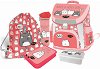 Комплектът е част от серията Lollipop Lil Babe, където ще откриете още ученически продукти и аксесоари по темата. ... Комплектът от Lizzy Card се състои от раница с капак, спортна торба, бутилка, ученически несесер и кутия за храна, които ще се харесат на всяко момиче. Раницата е изработена от водоустойчиви материали. Тя разполага с подплатен с дишаща материя гръб. Дъното ѝ е подсилено със здрава пластмаса. Презрамките ѝ са широки, омекотени и с възможност за регулиране на дължината спрямо ръста и комфорта на детето. Раницата разполага с едно основно отделение, в което има текстилна преграда и джоб за ... |