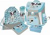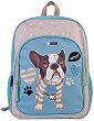 Раницата е част от серията We Love Dogs Woof, където ще откриете още ученически продукти и аксесоари по темата. ... Комплектът от Lizzy Card се състои от раница с капак, спортна торба, бутилка, ученически несесер и кутия за храна, които ще се харесат на всяко момиче. Раницата е изработена от водоустойчиви материали. Тя разполага с подплатен с дишаща материя гръб. Дъното ѝ е подсилено със здрава пластмаса. Презрамките ѝ са широки, омекотени и с възможност за регулиране на дължината спрямо ръста и комфорта на детето. Раницата разполага с едно основно отделение, в което има текстилна преграда и джоб за ... |