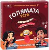 Играта от PlayLand е подходяща за деца над 5-годишна възраст. В нея могат да участват два или четири отбора състоящи се от 2 -ма играча. Но освен това може да се играе самостоятелно от 2 до 4 участника. Целта ѝ е да спечелите карти и точки, като правилно отгатвате думи и словосъчетания. Отборът събрал най-много точки от спечелените карти в края на играта, е победител. Подготовка за играта: Картите се поставят с лице надолу на достъпно за всички място, а рулетката и показалеца се поставят до тях. На всеки играч / отбор се раздава по една приставка за уста. Най-възрастният играч започва първи. Начало на играта: ... |