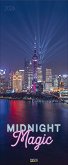 Този стенен календар Midnight Magic 2026 улавя завладяващата красота на тъмнината в зашеметяващи фотографии. Цветни силуети на градове, светещи улични лампи и отражения върху неподвижни водни басейни създават мистериозна, почти магическа атмосфера. От искрящи морета от светлина върху внушителни силуети на градовете до звездно небе над девствени природни пейзажи - този календар представя впечатляващо разнообразие от атмосферни нощни фотографии. Календарът е вертикално ориентиран, който допринася за пълнотата на изображенията. Отваря се посредством спирала, на която е нанизана метална лента, служеща за лесно закачане. ... |