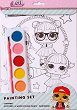 С творческият комплект за оцветяване с акрилни бои от "Totum", малките художници ще могат да оцветят 8 картинки на любимите си герои от "L.O.L Surprise". Това ще стане с помощта на включените в комплекта 6 цвята боички и четка. За да започнете да оцветявате е необходимо да си осигурите удобно място за работа - бюро или маса. За да не изцапате работното си място може да постелите стари вестници или мушама. За да върви работата може да екипирате малчуганите с престилка, палитра и чаша с вода за измиване на четките. ... |