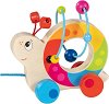 Очарователната комбинация от дървен търкалящ се охлюв от Goki е с любов проектирана играчка за дърпане, която придружава детето ви, докато се учи да ходи. Тя го съпътства в откриването на света и го насърчава да се движи. Допълнителен акцент е двигателната примка, която игриво стимулира развитието на фината моторика – така детето получава двойно повече забавление и полза от играта. ... |
