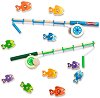 Децата ще се забавляват с играта от Melissa & Doug. В комплекта са включени 10 магнитни риби, 2 въдици и колело с числа. Рибките са номерирани с числата от 1 до 5. Числата съответстват на тези от колелото. Въдиците разполагат с макари. Малчуганите могат да завъртят колелото, за да разберат кои риби трябва да уловят. Играчът, който пръв улови всички рибки от своето число, печели. Децата могат да подобрят своите уменията за броене, цветово възприятие и фина моторика, докато играят. ... |