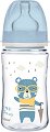 Бебешкото шише от серията "Easy Start" на "Canpol babies" е изработено от висококачествен полипропилен, който е безопасен и устойчив при продължителна употреба. Шишето е с широко гърло, което улеснява неговото пълнене и почистване. То е леко и прозрачно, а специалната му форма осигурява комфорт при използване. Биберонът е произведен от мек и устойчив силикон, който не дразни нежните бебешки венци и е подходящ за бебета над 3 месеца. Благодарение на формата си, той създава естествено усещане за вашето дете, заради приликата му с майчината гърда. Запазва естественият ритъм и рефлекс на сучене, като ви ... |