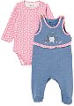 Детският комплект е част от колекцията Emmily, в която ще намерите още бебешки и детски продукти по темата. ... Бебешкият комплект на Sterntaler се състои от блуза с дълъг ръкав и гащеризон, изработени от мека и приятна на допир материя със състав 95% памук и 5% еластан. Блузката се отличава със стилен едноцветен десен, гладки шевове, които не предизвикват кожни раздразнения и тик-так копчета над лявото рамо, за по-лесно обличане и събличане. А гащеризонът има ефектно декориран десен, оформени стъпала за максимален комфорт при носене, достатъчно свободна кройка, която не ограничава естествените движения на бебето и ... |
