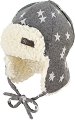 Бебешката зимна шапка тип ушанка на "Sterntaler" е изработена от приятна на допир материя със състав 76% памук, 23% полиесер и 1% еластан, и пухкава 100% полиестерна подплата. Тя се отличава с ефектно декориран десен, гладки шевове за оптимален комфорт при носене, ластик на тила и удобни връзки за по-лесно закрепване. Шапката покрива много добре главата и ушите на детето, като ги предпазва от студ и вятър. Препоръки за пране: Може да се пере обърната наопаки, в перална машина, на стандартна програма при 30°С. Да не се използват препарати за избелване. Устойчивост на многократно пране. ... |
