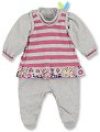 Бебешкият комплект от 2 части на "Sterntaler" се състои от гащеризон и блуза с дълъг ръкав. Блузката е изработена от мека и приятна на допир материя със състав 95% памук и 5% еластан, а гащеризонът е направен от мек плюш със състав на материята 80% памук и 20% полиестер. Блузата е със семпъл едноцветен десен, а за по-удобно обличане и събличане са предвидени тик-так копчета над лявото рамо. Гащеризонът има забавна апликация на сурикатче, което е част от серията "Elvis". За по-лесно обличане и събличане разполага с тик-так копчета в горната част на презрамките. Препоръки за пране: Може да се пере в ... |