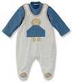 Бебешкият комплект от 2 части на "Sterntaler" се състои от гащеризон и блуза с дълъг ръкав. Блузката е изработена от мека и приятна на допир материя със състав 95% памук и 5% еластан, а гащеризонът е направен от мек плюш със състав на материята 80% памук и 20% полиестер. Блузата е със семпъл едноцветен десен, а за по-удобно обличане и събличане са предвидени тик-так копчета над лявото рамо. Гащеризонът има джоб и забавна апликация на лъвче в предната част, което е част от серията "Лео". За по-лесно обличане и събличане разполага с тик-так копчета в горната част на презрамките. Препоръки за пране: ... |