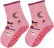 Детските чорапи на Sterntaler са меки, удобни и осигуряват оптимален комфорт при носене. Те обгръщат плътно детското краче и разполагат с гладки шевове и подсилени зони на пръстите и петите. Еластичната лента в горната им част прилепва към крака на детето без да го пристяга и държи чорапките плътно. А релефните силиконови елементи осигуряват добро сцепление при ходене и предотвратяват евентуално подхлъзване. Чорапите са изработени от приятна на допир материя със състав 85% памук, 12% полиамид и 3% еластан. Памукът, съдържащ се в материята, е обработен по специална технология, при която се подбират най-здравите и дълги ... |