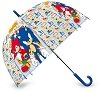 Дъждовните дни ще бъдат по-усмихнати и забавни с чадъра на таралежа Sonic! С ефектни декорации и удобна дръжка, той ще защити вашето дете, когато навън вали. А практичната му форма го прави удобен за хващане и носене от малките детски ръчички. Чадърът е изработен от PVC и метал. Подходящ е за деца над 3-годишна възраст. Чадърът е с размер ∅ 66.5 cm. ...