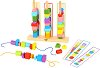 | Комплектът за низане с дървени мъниста от  Tooky Toy  е създаден, за да предложи на децата едновременно забавление и обучение. Състои се от 68 части – 54 цветни дървени мъниста, основа с щипка, 4 цветни въженца и 6 двустранни карти. Играта е изработена от естествени и безопасни материали, които гарантират сигурна игра. Докато подреждат мънистата върху основата, малчуганите развиват фината моторика, координацията око–ръка, логическото мислене и способността да различават форми и цветове. Комплектът е подходящ за деца над 3 години и е чудесен начин да се стимулират въображението, креативността и социалните умения. ...  |