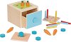 | Развивайте уменията на вашето дете чрез игра с многофункционалния образователен комплект от  Tooky Toy! Той е идеален за деца над 12 месеца и включва четири дървени дъски с различни елементи за сортиране, вмъкване и разпознаване. Те подпомагат развитието на фината моторика, координацията око-ръка, логическото мислене, както и уменията за разпознаване на цветове и форми.  Всички части се съхраняват удобно в компактна дървена кутия с издърпващо се чекмедже, което улеснява подреждането и съхранението след игра. Комплектът е изработен от висококачествено дърво и покрит с безопасни, нетоксични бои, напълно подходящи за малки  ...  |