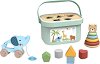 | Комплектът за игра 3 в 1 с дървени играчки от  Tooky Toy  е универсален и вълнуващ избор, който съчетава три любими детски занимания в един комплект. Той е подходящ както за подарък, така и за всеки друг повод, като предлага богати възможности за учене и забавление.  Включените играчки насърчават развитието на различни умения у децата. Кофата за сортиране на форми е с пет цветни отвора, които помагат на малчуганите да разпознават форми и да упражняват логическото си мислене чрез съпоставяне. Играчката за подреждане на мече, състояща се от кула с четири пръстена и глава на мече, развива фината моторика, сръчността и  ...  |