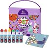 Представяме ви комплект за рисуване с точки от Tooky Toy – забавен и различен начин за създаване на детски произведения на изкуството. Вместо традиционни четки и моливи, тук децата използват 6 цветни маркера с гъбеста глава, които при лек натиск оставят красиви цветни точки. Те могат да се комбинират за постигане на по-големи цветни площи, наслагвания и интересни ефекти. Комплектът развива фината моторика, координацията око-ръка и умението за разпознаване и съчетаване на цветове. Децата могат да експериментират, да украсяват включената книжка за оцветяване или да създават напълно собствени картини. Боите са напълно ... |