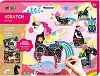 Превърнете своето произведение в магически фигурки на еднорози! Комплектът от Avenir позволява изстърганите картини да се превърнат в красиви фигурки с подвижни елементи. Достатъчно е да изстържете повърхността, за да създадете интересни шарки, след което да свържете отделните части с включените щифтове. Поставете фигурките пред специалния фон и ще имате перфектната сцена за собствена приказна история. Комплектът съчетава творчество и ролеви игри, като насърчава въображението, фината моторика и разказвателните умения. Оригиналността на комплекта е в техниката Scratch Art – изображението се създава чрез изстъргване на ... |