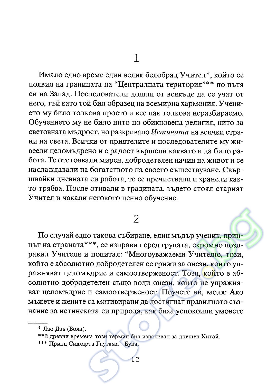 Даоисткият начин за подмладяване. ... "От най-дълбока древност и до наши дни даоистките майстори са били удивително младолики и енергични до дълбоки старини. Един от източниците на тяхната жизненост била практиката за подмладяване с даоисткия самомасаж: използването на вътрешната енергия или ци, за да се укрепят и подмладят сетивните органи (очи, уши, нос, език и кожа) и вътрешните органи. Тези техники датират отпреди пет хиляди години и съвсем доскоро представляваха старателно пазена тайна, предавана от учител на малка група избрани ученици. Много често всеки от учителите е бил запознат само с част от практиките. На ...