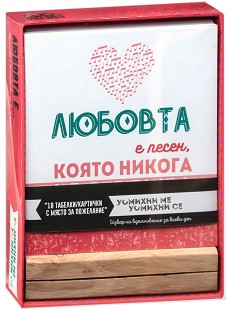 Любовта е ... Комплект от 18 табелки / картички + стойка Доставка: