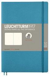 Leuchtturm1917 е изработен с огромно внимание към детайлите. Подходящ е за водене на записки и бележки на работното място, в университета или вкъщи. Направен е с изчистен дизайн, с меки корици. Разполага с две текстилни ленти за разделяне и отбелязване, както и номерация на ъгълчетата на всяка страница. Последните 8 страници са с перфорация, която улеснява тяхното откъсване, за да може лесно да дадете бележка или послание на някой друг, а от вътрешната страна на задната корица на тефтера има джоб, в който ще може да съхранявате важни бележки или визитни картички. За по-голяма сигурност на вашите записки, дизайнът разполага с еластична лента за затваряне. Тефтерът е с формат B6+ и бели листове, а хартията, която е използвана е безкиселинна и непропускаща мастило.