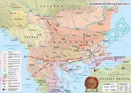 Стенна историческа карта: България при цар Борил и цар Иван Асен IIM 1:850 000 Доставка: