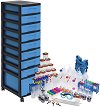 Мобилната ученическа лаборатория от Betzold е практично решение за организиране на експериментална работа в класна стая. Тя позволява на до 16 ученици да провеждат разнообразни опити едновременно, като осигурява удобен достъп до необходимите материали. Конструкцията е проектирана за лесно придвижване между различни помещения, а при нужда колелата могат да се свалят. Учебните пособия и консумативи се съхраняват подредено в 8 подвижни чекмеджета, което улеснява както раздаването, така и прибирането им след работа. Размери: 38 / 86 / 30 cm. ... |