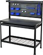 Работната маса на Profi+ е практична и удобна. Изработена е от метал, което осигурява здравина и издръжливост. Има чекмедже и разполага с метален решетъчен рафт и стена с 32 държача за лесно съхранение на различни инструменти и накрайници. Масата е с размери 122 / 151 / 56 cm. ... |
