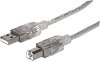 Високоскоростният USB кабел от "Manhattan" е предназначен за свързване на компютър или лаптоп с принтер, скенер, външен хард диск или многопортов адаптер чрез USB-A male към USB-B male. Кабелът пренася данни със скорост до 480 Mb/s и е подходящ за устройства с USB 2.0. Обвивката му е прозрачна и е изработена от гъвкави материали. Дължината му е 1.8 m. Характеристики: подходящ за: компютри, лаптопи и компютърна периферия скорост: до 480 Mb/s тип на кабела: 28-AWG напрежение: 300 V постоянно напрежение изолационно съпротивление: 5 MΩ проводимо съпротивление: 10 Ω конектор 1: USB Type-A male ... |