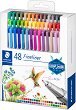 Тънкописците от серията Design Journey на Staedtler са подходящи за всеки, който обича да рисува и пише. Пишещите средства имат триъгълна форма на корпуса и стабилен метален връх с дебелина 0.3 mm, осигуряващ лесна работа с шаблони и линии. В комплекта са включени 48 броя тънкописци, в ярки цветове, с мастило на водна основа, съдържащи се в практична опаковка за многократна употреба. Цветът на писане съответства на този на капачката на тънкописеца. ... |
