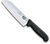 Ножът е част от серията Fibrox, където ще откриете още кухненски принадлежности. ... Кухненският нож Сантоку на Victorinox е с универсално приложение и е подходящ за рязане, нарязване на кубчета и раздробяване. Разполага с ергономичен дизайн и противоплъзгаща дръжка, както и висока якост и сила при рязане. Освен това е снабден с двойно закалено острие за оптимална гъвкавост. Изработен е от висококачествена неръждаема стомана с огледално полиране, която елиминира всякакви грапавини и микро пори и разполага с максимална устойчивост срещу корозия. Ножът е с дължина на острието 170 mm. ... |