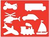 Шаблонът Превозни средства е идеален за малки и големи любители на рисуването. С него лесно могат да се създават точни и забавни изображения на различни превозни средства - самолет, кола, мотор, влак, камион, лодка и хеликоптер. Подходящ е за използване с бои, моливи, флумастери и пастели, като може да се прилага върху хартия, картон или други повърхности. Идеален е за създаване на картички, табла, проекти, рисунки и декоративни композиции. Шаблонът е изработен от устойчив материал, което го прави подходящ за многократна употреба както в училище и детска градина, така и у дома. ...