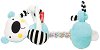 Плюшеният еднорог от серията "Bandana Buddies" на "Skip Hop" ще прави компания на малкото ви дете по време на разходка и неусетно ще се превърне в най-добрия му приятел. То е изработено от мек текстил и е с форма лесна за хващане от малките бебешки ръчички. Предвидената дрънкалка стимулира развитието на слуха на бебето, а включената дъвкалка ще облекчи болката от никнене на бебешките зъбки. Еднорогът има кърпа-дъвкалка на вратлето, която лесно може да се прикрепи към ръчичката на детето, като широчината се регулира спрямо китката му. Играчката има халка, с която лесно може да я закачите за детската ... |