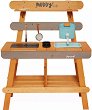 Детската кухня от Janod е предназначена за игра както на открити, така и на закрити пространства. Тя има очарователен дизайн, който ще впечатли малчуганите и ще им помогне да разгърнат въображението си в различни ролеви игри през топлите дни. Кухнята е снабдена с готварски плот с отделение за съхранение и капак, 2 дупки за саксии, мивка с подвижен резервоар за вода и рафтове за съхранение. Към нея са включени 2 саксии, сито, четка и 2 ванички, с които играта ще бъде още по-вълнуваща. Освен това капака на плота представлява двустранна дъска с котлони и черна страна за писане с тебешир. Комплектът ще развива детското ... |