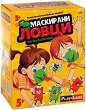 Тествай своята бързина и ловкост с играта Маскирани ловци на буболечки от PlayLand. Тя е подходяща за деца над 5-годишна възраст и в нея ще откриете 2 хамелеонски маски, 2 хамелеонски езика, 28 карти и 14 картодържача. Може да се играе самостоятелно или с приятел. Целта на играта е да съберете възможно най-много буболечки. Подготовка за играта: Хамелеонските езици се слагат в предните дупки на маските, връвчиците се промушват през страничните и се завързват. След това играчите поставят маските на устата си и разделят картите в две купчинки - таргет карти и карти с точки. Таргет картите са двулицеви с едно и също ... |