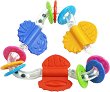 Бебешката играчка от Bondigo ще бъде чудесна първа играчка за вашето бебе, която развива неговите сетива. Тя разполага с рингове и цветни топчета, които дрънкат при разклащане. Освен това им чесалка, която облекчава венците на бебчето при никнене на зъбките. Със своята триъгълна форма осигурява лесен захват за най-малките. ... |