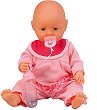Всяко момиченце обича да играе на майка и бебе. Точно затова куклата бебе от Moni ще се хареса на госпожиците. Тя е подходяща за деца над 3-годишна възраст. Куклата е изработена от пластмаса, а при изработката ѝ е обърнато специално внимание на детайлите. Тя е облечена лилаво гащеризонче и шапка в тон. Освен това, в комплекта ще откриете шишенце и одеялце, с което детето да завива своята кукла бебе. Куклата е с височина 41 cm. ... |