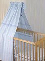 Спалният комплект за бебешка люлка First Dreams от Lorelli се състои от олекотена завивка, плик, възглавница, калъфка за възглавница, долен чаршаф, балдахин и обиколник. Външната част на спалното бельо е изработена от мека и приятна на допир материя със състав 100% памучен ранфорс, а балдахинът и пълнежът на възглавницата, обиколника и олекотената завивка са от 100% полиестер. Предвидените връзки на обиколника ще помогнат за лесно закрепване към предпазните решетки на бебешкото креватче, като го обгръщат от вътрешната страна и предпазват бебето от евентуален удар в решетките. Спалният комплект е подходящ за люлки и ... |