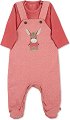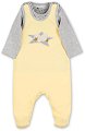 Детският комплект е част от колекцията Emmily, в която ще намерите още бебешки и детски продукти по темата. ... Бебешкият комплект на Sterntaler се състои от блуза с дълъг ръкав и гащеризон, изработени от мека и приятна на допир материя със състав 95% памук и 5% еластан. Блузката се отличава със стилен едноцветен десен, гладки шевове, които не предизвикват кожни раздразнения и тик-так копчета над лявото рамо, за по-лесно обличане и събличане. А гащеризонът има ефектно декориран десен, оформени стъпала за максимален комфорт при носене, достатъчно свободна кройка, която не ограничава естествените движения на бебето и ... |