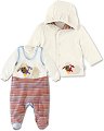 Бебешкият комплект от 3 части на "Sterntaler" се състои от суитшърт с качулка, блуза с дълъг ръкав и гащеризон. Той е изработени от мека и плътна материя със състав 95% памук и 5% еластан, която е нежна на допир до чувствителната бебешка кожа. Благодарение на добавения еластан материята не се отпуска и дава комфорта, от който се нуждае всяко бебе в ежедневието си. Суитшъртът се отличава със семпъл едноцветен десен, красива апликация на агънце, което е част от серията "Stanley", както и удобна качулка. Гащеризонът има ефектен десен и удобни оформени стъпала за максимален комфорт. А блузката е с ... |