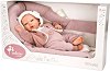 Реалистичната кукла-бебе Зои от Arias в нежно розово плюшено костюмче е създадена, за да донесе магия и радост в детския свят. Тя пленява с очарователна усмивка и големи, изразителни очи, които създават усещане за истинска близост и топлина още от първия миг. Куклата-бебе Зои впечатлява с мекото си тяло и крайници от висококачествен винил, които придават реалистично излъчване и приятно усещане при допир. Розовото плюшено костюмче тип ромпър и шапката в същия цвят допълват нежната ѝ визия и я правят още по-гушкава и любима. В комплекта са включени биберон и удобна възглавничка, които допринасят за по-реалистична и ... |