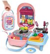 Вкъщи си имате малък готвач, който непрекъснато твори вкусни гозби от подръчни материали? Тогава детската кухня в куфарче Kitchen Cook е идеалната играчка за него! Комплектът е оборудван с разнообразни аксесоари, необходими за игра на майстор-готвач. Сред тях ще откриете лъжици, чаши, тиган, тенджера и фигурки на храна за игра. Най-хубавото е, че всичко се събира в компактно куфарче с дръжка и презрамка, което улеснява съхранението и пренасянето, дори когато сте на път. Куфарчето е с размери 25 / 18 / 10 cm. ... |