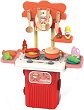 Детската кухня е прекрасен подарък за всеки малък готвач, който обича да помага на мама в готвенето. Тя е изработена от пластмаса и е подходяща за деца над 3-годишна възраст. Кухнята идва в комплект с всичко необходимо - тиган, нож, чинии, черпак, шпатула, зеленчуци, шишенца за зехтин, кетчуп, доматен и барбекю сос и други. Тя има 2 котлона с въртящи се копчета, помощни рафтчета и може да се трансформира в кухненски плот или скара. Компонентите пристигат във формата на куфарче, което разполага с удобна дръжка и колелца. По този начин, вашето мъниче ще може да носи любимата си играчка навсякъде. Сглобена детската кухня е ... |