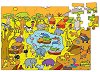 С пъзела от Galt вашето дете ще се забавлява с часове. Той се състои от 25 части. Когато го сглобите ще се образува кръгъл пъзел. Върху него са изобразени различни картинки, които детето може да разгледа и да се научи да разпознава. Към комплекта са включени и фигурки на костенурка и рибка. В гърбовете си те имат вградени лупички, с които да открие скритите изображения в пъзела. Нареден пъзелът е с диаметър 58 cm. ... |