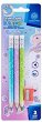 Графитните моливи от Astra S.A. са отличен избор за първи стъпки в писането и рисуването. Комплектът включва 3 молива с гумичка и острилка, осигуряващи всичко необходимо за малките ученици. Те са с триъгълно сечение, което подпомага правилното позициониране на пръстите и осигурява комфорт при писане. Мекият графит с твърдост HB оставя ясна и плавна линия без усилие. Благодарение на по-големия Jumbo формат моливите са удобни за захващане от малки ръчички. Атрактивният дизайн с еднорог внася допълнително настроение в учебните занимания. ... |