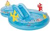 За малчуганите надуваемият център Морско дъно от Intex ще осигури часове забавление навън или вкъщи. Той е снабден с пързалка и пръскалка. В топлите летни месеци може да се използва като басейн, а когато времето не позволява игра на открито, може да се надуе в детската стая. А за да бъде играта по-забавна, към едната част на басейна има опция да се включи градински маркуч. По този начин през него ще се изпръсква вода, която да наподобява на фонтан. В случай на спукване, към комплекта е включена ремонтна лепенка, която да използвате. Максималното допустимо тегло за използването на детския център е 81 kg. Надуваемият ... |