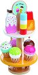 Сладоледът е едно от най-любимите сладки изкушения на всяко дете. Поради тази причина от Lelin Toys предлагат чудесен комплект за игра, с който малчуганите ще могат да разиграват разнообразни ролеви игри. Използвайки въображението си, те ще имат възможност да влязат в ролята на продавачи, които "предлагат" вкусни ледени изкушения на своите приятели. Комплектът включва поставка за сладолед и 6 сладоледа. Всички елементи са изработени от дърво, боядисано с безвредни бои на водна основа. Размерите на основата са 10.5 / 10.5 / 2.5 cm. ...