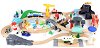 Децата ще се впуснат в скоростни приключения с комплекта Летище и пристанище. Той включва дървени релси за сглобяване, мост, надлези, бариери, локомотив с вагони, самолет, лодка, камиончета, колички, дървета, храсти, пътни знаци, светофар, фигурки на животни, фигурки на хора, придържащи елементи, морски фар, кула на летище и магнитен кран. Вагоните имат магнитно закрепване. С влакчето децата могат да минат през летище и пристанище. Те могат да играят с лъв, жираф, слон, крокодил, хипопотам и зебра. Малчуганите могат да спазват правилата за движение като се научат да разпознават пътните знаци. Дайте им шанс да развият ... |