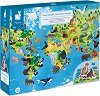 Развийте географските умения на вашето дете с пъзела на Janod. Комплектът съдържа 200 части за подреждане, брошура и 3D фигурки на застрашени животни. Брошурата е образователна и включва интересни факти. Фигурките са 50 на брой и се сглобяват със стойка. Когато малчуганът подреди пъзела, той трябва да сложи животните на мястото, където те могат да се срещнат. Имената на животните са надписани на гърба им. Комплектът спомага за развитието на двигателните умения, паметта, координацията и въображението. Размерите на пъзела са 99 x 69 cm. ... |