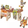 Малкият човек ще се превърне в истински търговец със супермаркета. Той разполага с касов апарат, плот с рафтове, поставка за торта с капак, витрина, кафемашина, баркод четец, ПОС терминал, кредитна карта, игрални пари и хранителни продукти. Хранителните продукти включват кроасан, наденичка, зеленчуци, близалки, кафета, сокове, бисквитки, пица и други. Баркод четецът издава звук и свети чрез натискане на бутон. Той работи с 2 батерии AAA, които може да закупите отделно. ПОС терминалът също издава звук. Кафемашината има дръжка, която може да се натисне надолу. Капакът на витрината се отваря и затваря. Касовият апарат ...