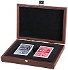 От "Manopoulos" предлагат на вашето внимание комплект за игра на карти в луксозна кутия. Кутията е изработена от орехово дърво и естествена кожа. В нея са прибрани 2 тестета карти, изработени от пластифициран картон. Независимо от повода, комплектът ще зарадва всеки любител на класически карти игра. Кутията за съхранение е с размери 24 x 17 cm. ... |