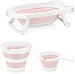Практичният комплект за къпане на Sevi Baby се състои от бебешка ваничка, кофа за вода и каничка за поливане. Основното предимство на комплекта е, че ваничката, кофата и каничката може да се сгъват до компактни размери, така че да бъдат удобни за употреба както у дома, така и когато сте на почивка. Ваната разполага с гумирани крачета за максимална стабилност и неплъзгащо се дъно, което осигурява добра опора на детето. За максимално удобство са добавени 2 места за поставяне на принадлежности за къпане. А предвиденият изход за оттичане на водата прави ваната лесна за използване, тъй като не се налага да я вдигате за да я ... |
